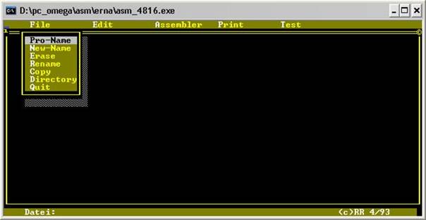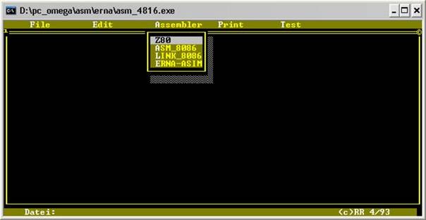 Der dritte Eintrag im Balken ist das Assembler-Menü: