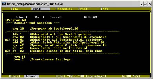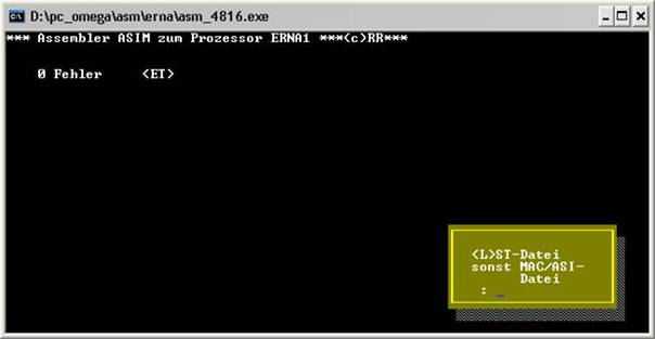 Der Assembler startet sofort und legt bei Fehler 0 die weiteren Dateien an: