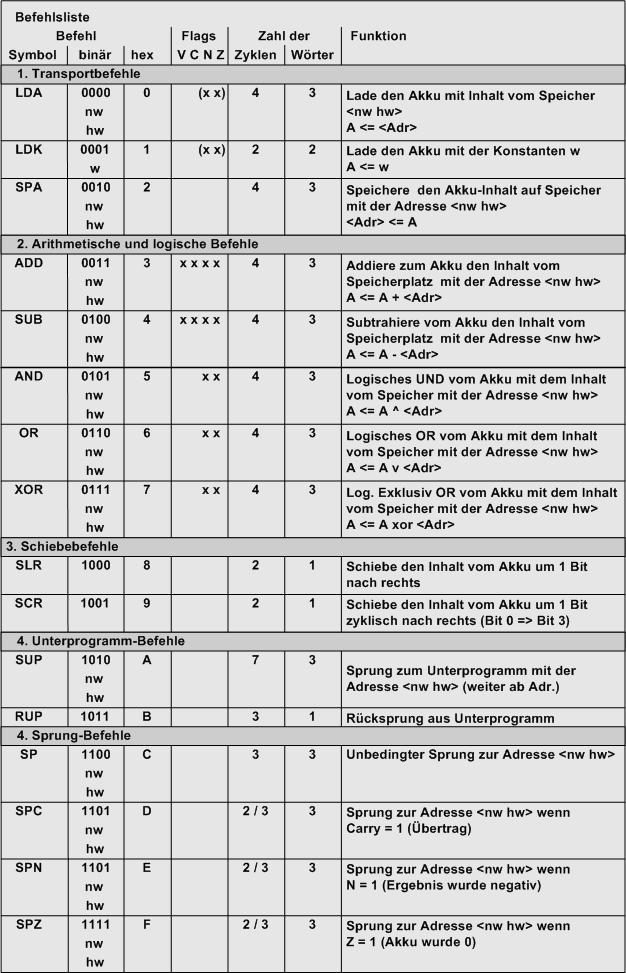 : Simulator 4-Bit-Rechner - Befehlsliste
