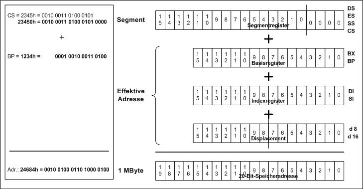 Es wurde kurz gezeigt, wie die reale Adresse im Speicher entsteht, aber neben dem