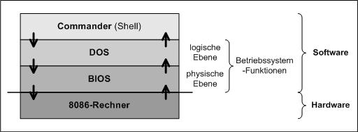 Bei MS-DOS besteht das Betriebssystem aus 2 Schichten, dem