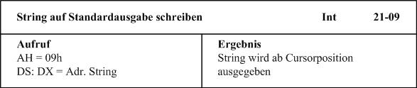 Da der Interrupt 21h mehrere Möglichkeiten anbietet, wird hier die Funktion 9