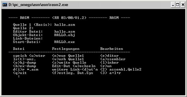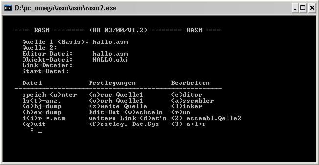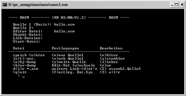 Der Assembler wird mit dem Kommando <a> aktiviert. Das System zeigt dann