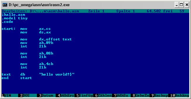 wieder ans Betriebssystem ab, anderenfalls wird das Fenster geschlossen. In der letzten Zeile steht die Segment-Direktive "end" und danach das Startsymbol. Hier könnte man in Übereinstimmung mit dem Anfang auch etwas anderes schreiben |