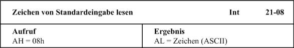 Dann folgt der Aufruf eines weiteren Interrupts 21h mit der Funktion 8 - das