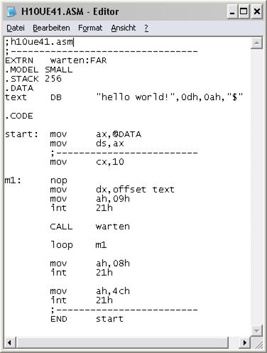 Hier wurde in bekannter Weise das 1.Programm "H10UE41.asm", das Hauptprogramm,