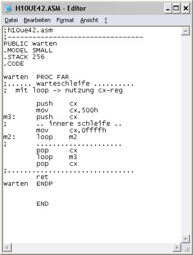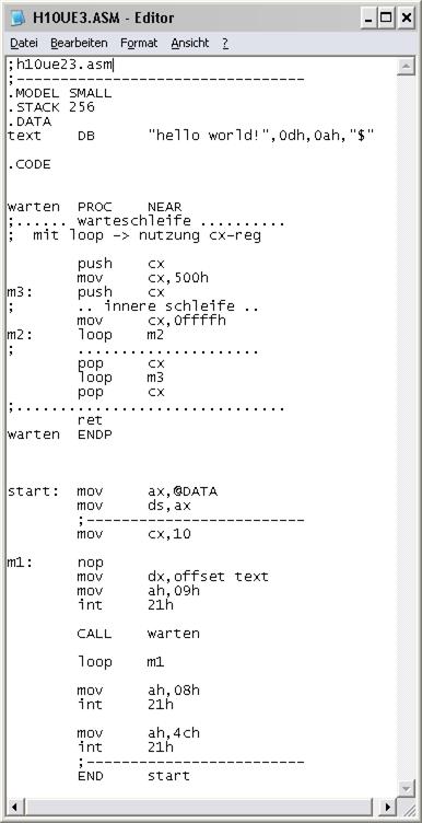 Nun zur praktischen Realisierung mit dem 8086-Assembler. Im Assembler werden sie