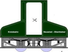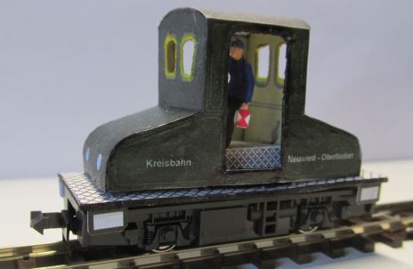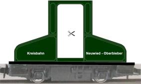 Auf den Seiten zur Geschichte der Stadt Neuwied findet man die Seite Alte Lok als Stadtgeschichte zum Ausschneiden und dort die abgebildete Lok. Sie ist eine E-Lok, hat zwei Achsen - eigentlich könnte das auch auf dem 2-achsigen KATO-Fahrgestell aufgebaut werden!? Da es sogar einen Ausschneidebogen zu dieser Lok gibt, kann man es sogleich einmal probieren. |