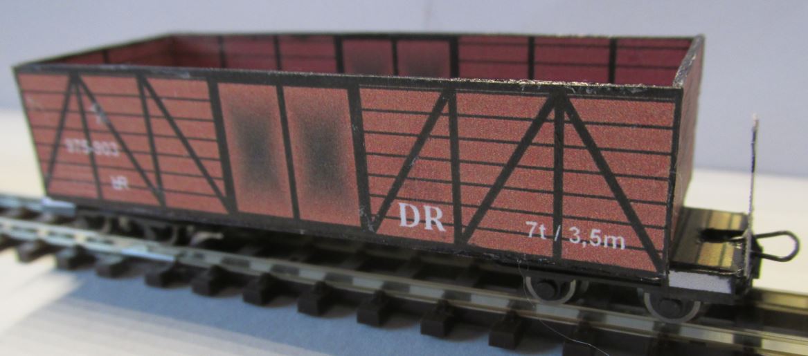 Das ist der komplette Ausschneidebogen für beide offene Güterwagen . |