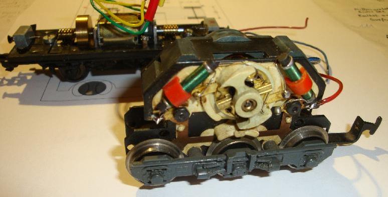 Auf einer Modelbahnbörse konnte preiswert ein brauchbarer Antrieb ersteigert werden, so dass die zweite Umbauvariante