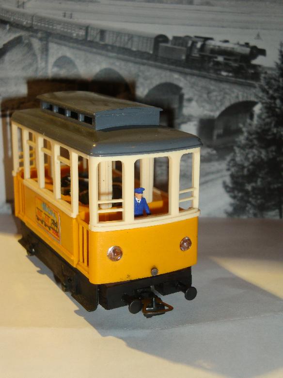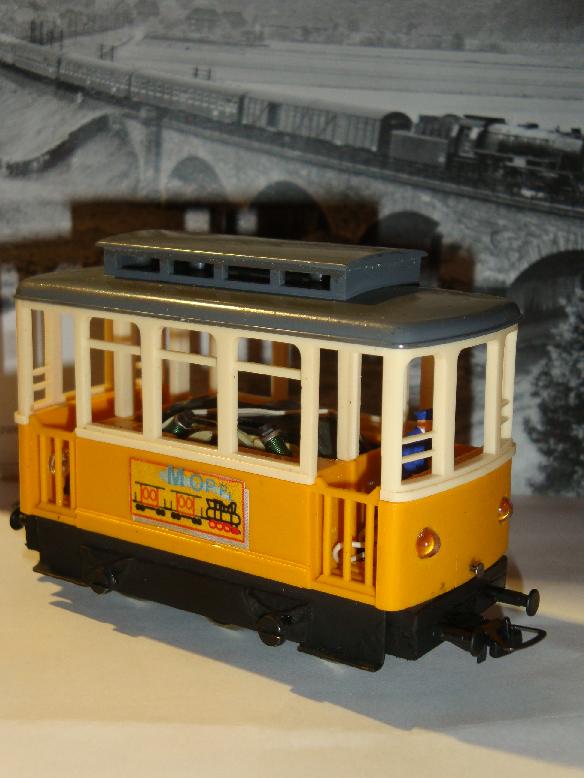 Als Gag wurde noch ein Aussichtswagen erstellt. Dazu wurde das Fahrwerk, bzw. die Blende von dem zum Triebwagen umgebauten Beiwagen genutzt und in gleicher Weise wie beim Beiwagen umgebaut, jedoch ohne Fahrstromabnahme. Der weitere Fahrzeugaufbau erfolgte völlig neu, natürlich mit Sitzen und Figuren.