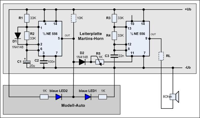 Es werden nun nur noch zwei Blinkschaltungen und ein Horn gebraucht