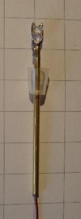 Auf ein kleines Stück Messingrohr (3mm dick) wird oben wieder eine LED mit einem Bein