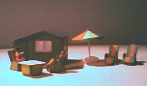 Zusätzlich wurden noch ein paar Gartenmöbel und Sonnenschirme bereitgestellt (alles im Maßstab 1 : 87).