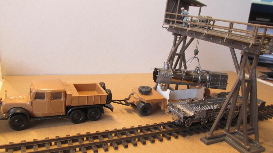 | Hier wird der Kessel angeliefert, das Laufwerk ist schon fertig - nun werden beide zusammengefügt - man nennt das wohl auch Hochzeit! |