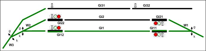 Gl12 (vor dem Stellwerk) zeigt grün und der Innenraum vom Stellwerk ist rot
