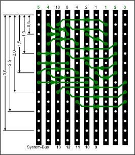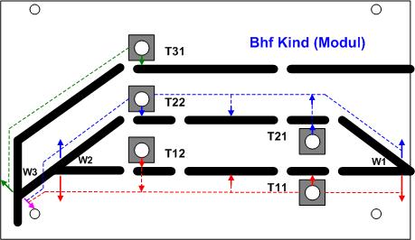 sind die neuen Verbindungen). Die Verbindung zwischen der Schaltelemente-Platte und der Bahnplatte