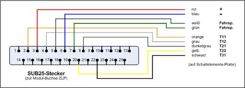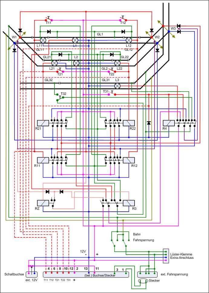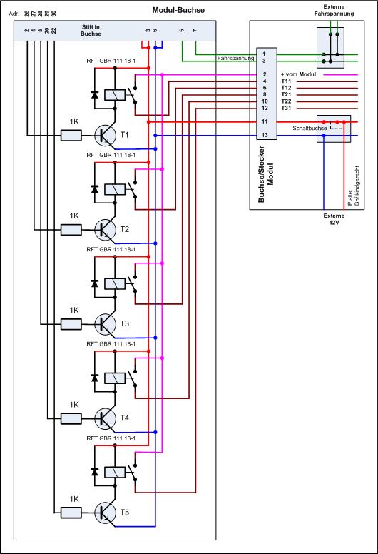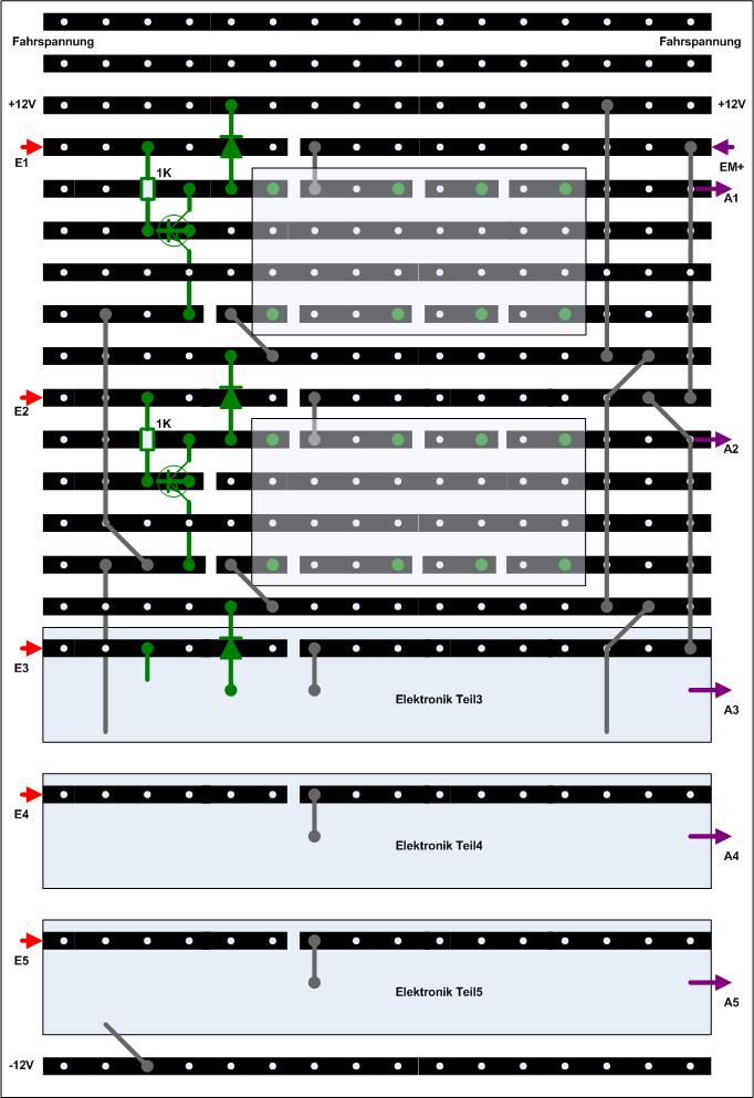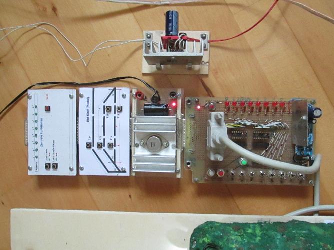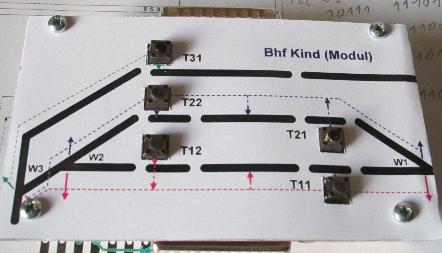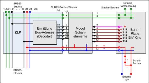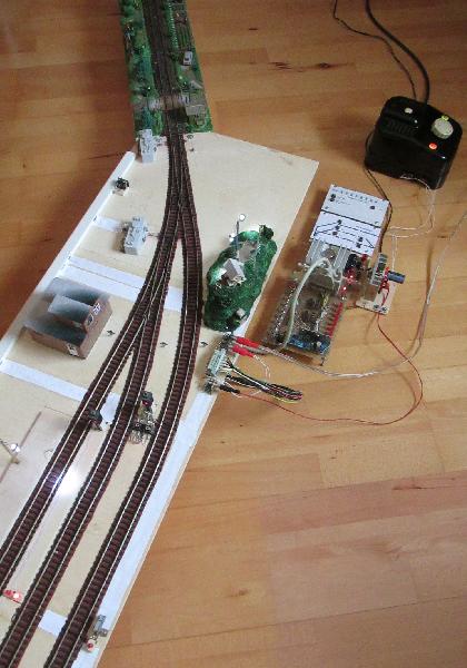 des Steuermoduls zu denen der Bahnhofsplatte parallel geschaltet werden. Dazwischen