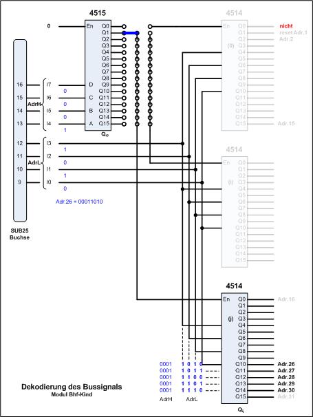 decodiert den oberen Teil (AdrH) des 8-Bit-Busses. Da die Adressen 26 bis 30 für