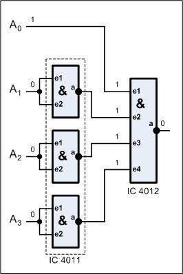 den oberen Teil das Bitmuster 0001 haben, wird nur der Ausgang Q1 aktiviert.