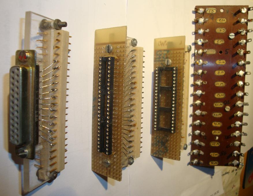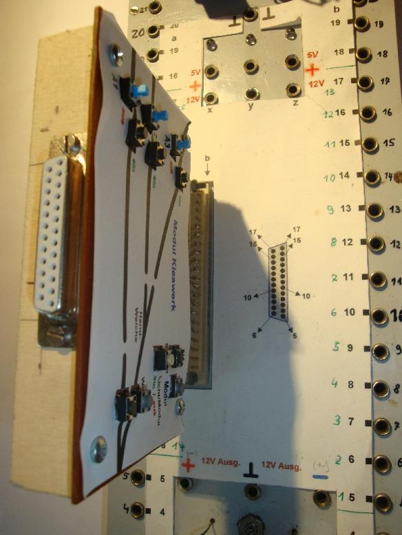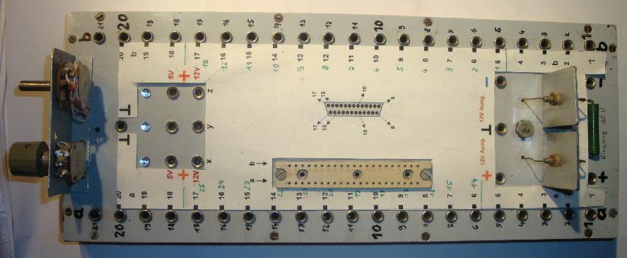 Hat man so ein Versuchsbrett nicht, dann muss man natürlich nicht das dargestellte Steckersystem verwenden, sondern man baut gleich eine SUB25-Buchse (Stecker) auf das Versuchsbrett und baut auf dieser Basis alle notwendigen weiteren Adapter auf.