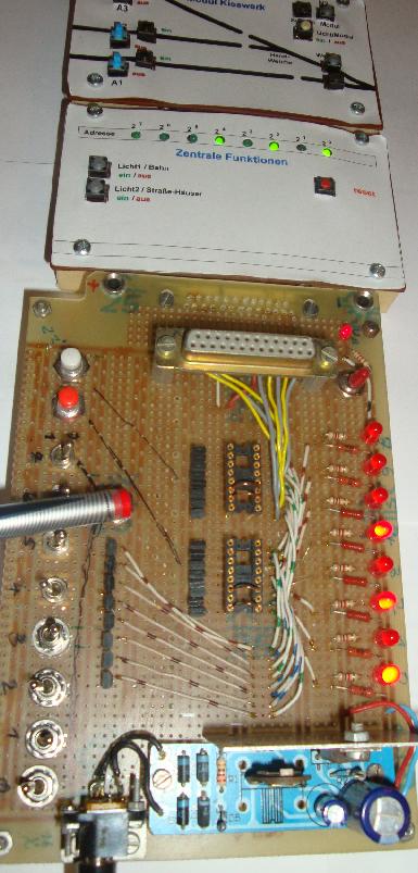 Beim Testen der Module (Steuer- und Bahnmodule) fiel mir ein, dass ich einmal vor längerer Zeit zum Test völlig anderer Platinen ein Testbrett gebaut hatte - das sollte doch auch nutzbar sein?