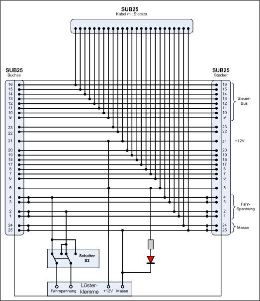 Buchse geführt, sondern alle Leitungen komplett auf eine SUB25-Buchse und Stecker