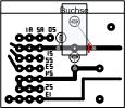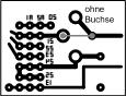 Der Einbau der Buchse in die vorhandene ZLP ist relativ einfach. Es werden oben links entsprechend der Anschlüsse der Buchse drei Löcher gebohrt. Sind die Löcher dicht an den Leiterzügen + und - ((2) und (1); das passt sehr gut), kann man die Verbindung einfach "rüberlöten". Die + Leitung wird unter der Buchse getrennt und von (3) eine Drahtbrücke hinter die Trennung gelötet. |