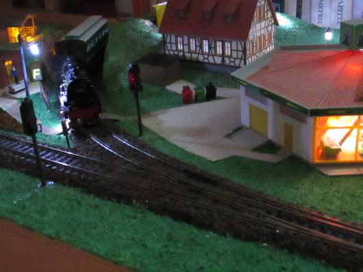 Auch bei Nacht ist hier manchmal Betrieb, die 78 zieht ein paar preußische Abteilwagen (das Bild ist noch aus einer "Vor-Bäume-Zeit"). |