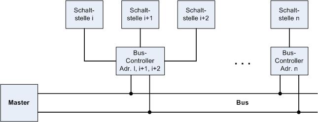 Jeder Schaltstelle auf dem Modul ist ein Bus-Controller (Dekoder) zugeordnet