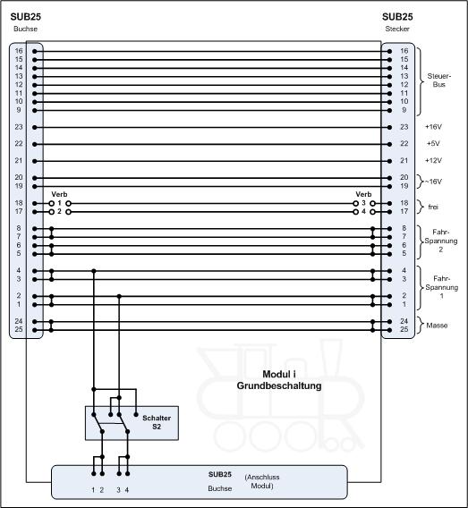 Moduls in die Anlage, ein Umschalter eingebaut. Alle weiteren Fahrspannungsanschlüsse