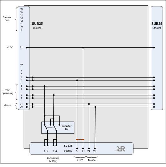 Das bedeutet in der Modulbeschaltung, dass die Versorgungsspannungen ebenfalls auf