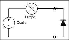 einer Glühlampe in Sperr- und Durchlassrichtung getestet, diese Diode funktionierte