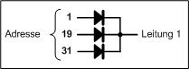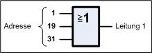 die Adresse 1 oder die Adresse 19 oder die Adresse 31 auf den Bus