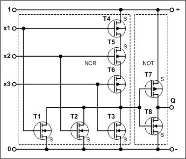 sehr geringen Energiebedarf und eine sehr variable Betriebsspannung. Allerdings kann man diese Schaltung nicht auf beliebig viele Eingänge erweitern, somit muss eine Kaskadierung erfolgen (Zusammenschaltung vieler einzelner Schaltungen). Nimmt man einmal an, dass 256 Adressen auftreten, dann könnten 128 Einsen auf der Leitung 1 auftreten. Eine Oder-Schaltung mit 128 Eingängen ist in dieser Art nicht ganz einfach. |