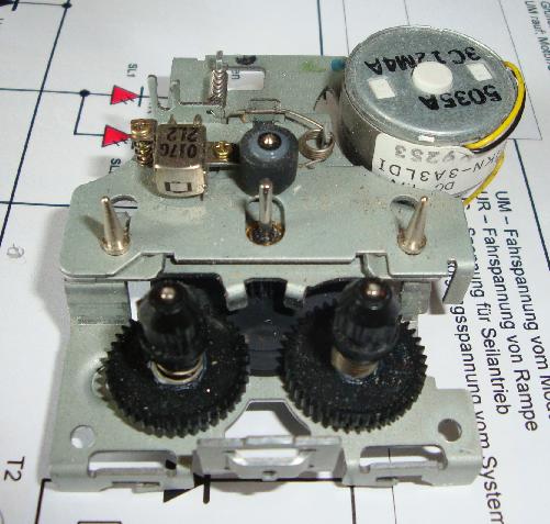 Ganz positiv ist auch, dass in solchen Teilen immer eine mechanische Rutschkupplung vorhanden ist, die in unserem Fall beispielsweise am Ende der "Seilbahn" aktiv werden kann. Man könnte auch versuchen die automatisch Abschaltung vom Bandgerät zu nutzen. In diesem Fall war dieses Teil nicht mehr vorhanden. Das Problem ist nun nur noch die Gestaltung der Wickelrollen. |