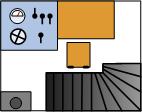 So könnte die Inneneinrichtung aussehen (links). Die drei Lampen dienen der Anzeige des Betriebszustandes, eine gelbe leuchtet, wenn am Modul 12V anliegt, die rote, wenn Seilbetrieb stattfinden soll und abwechselnd die beiden gelben, wenn eine Zugeinheit hochgezogen wird. Zusätzlich zur roten Lampe werden die Innenbeleuchtung des Bedienhauses und die vier Lampen an der Rampe eingeschaltet. (Man kann dieses Gebäude auch sehr gut als kleines Stellwerk nutzen) |