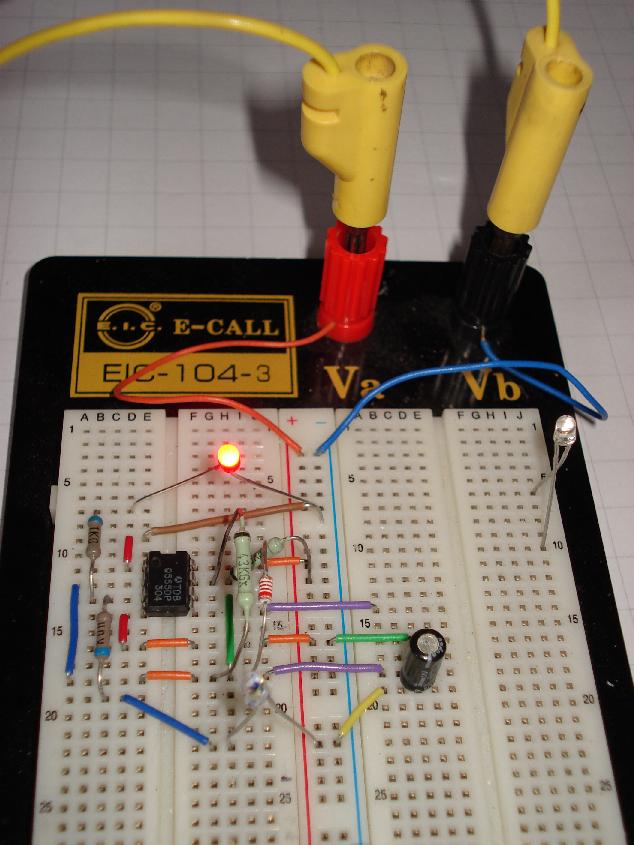 Die dritte Variante zum Testen der Schaltung, ist der Aufbau auf einem Steckbrett.