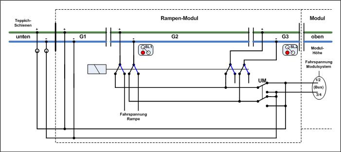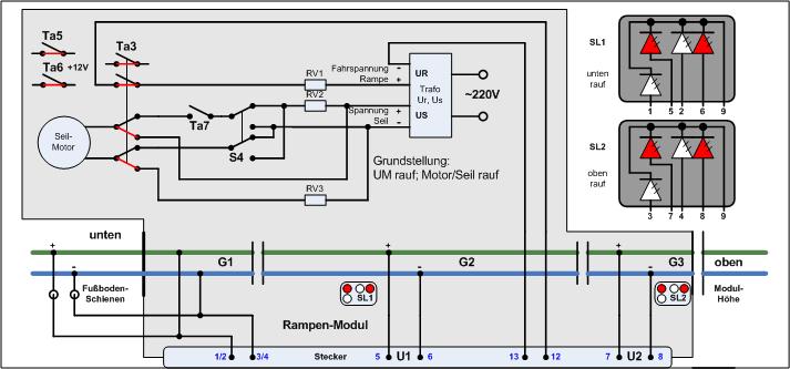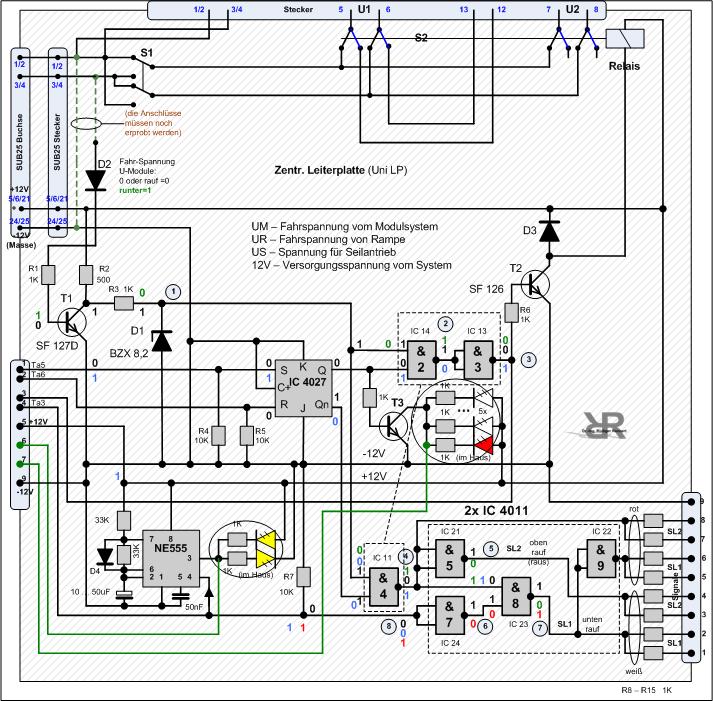Im Schaltplan für die Logik der Rampe sind noch zwei weitere Baugruppen vorhanden. Diese