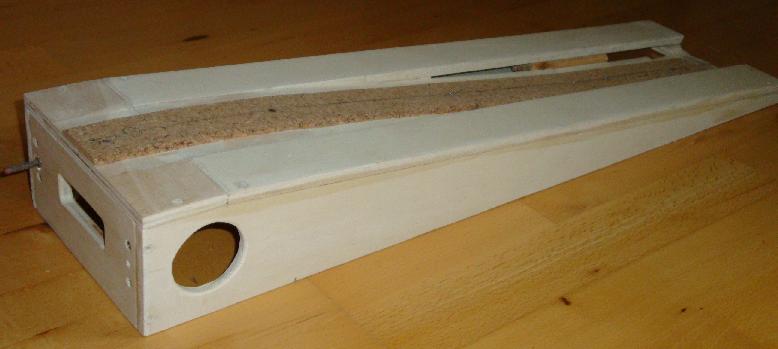 außen etwa 4cm breite gerade Sperrholzbrettchen auf die Rampe geleimt. In dem