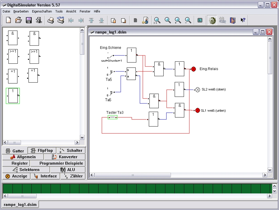 Im Folgenden ist ein Bild der Oberfläche des Simulators mit der Schaltung dargestellt: