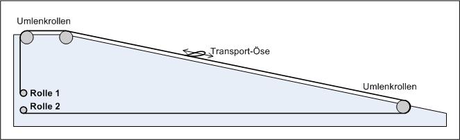 (Rolle 1) und eine zum Herunterziehen der Öse (Rolle 2).