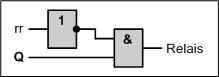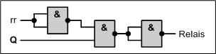 Es gilt also: das Relais wird angesteuert wenn Q = 1 und rr != 1 (also negiert) ist