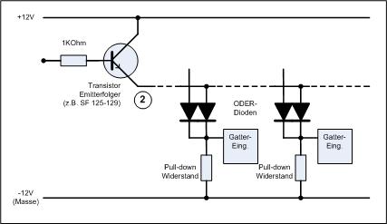 Schaltung befindet sich im Emitterzweig, das sind die Gattereingänge und