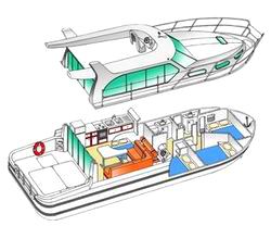 Dazu erstellt man einen Riss auf Wasserlinie des Bootes und einen vom Deck.