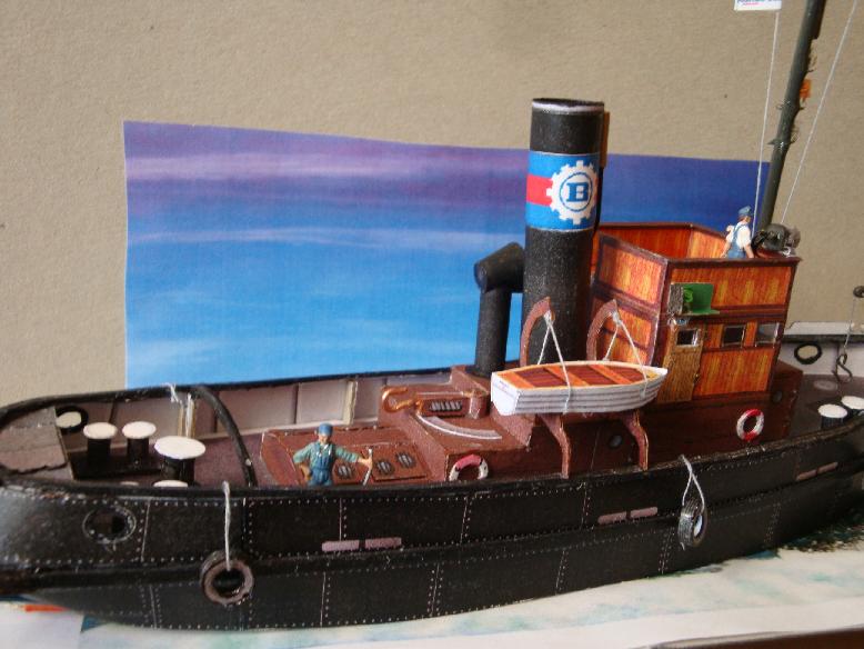 Auch erhielt der Schlepper wieder Positionslampen, es gibt Figuren an Bord.