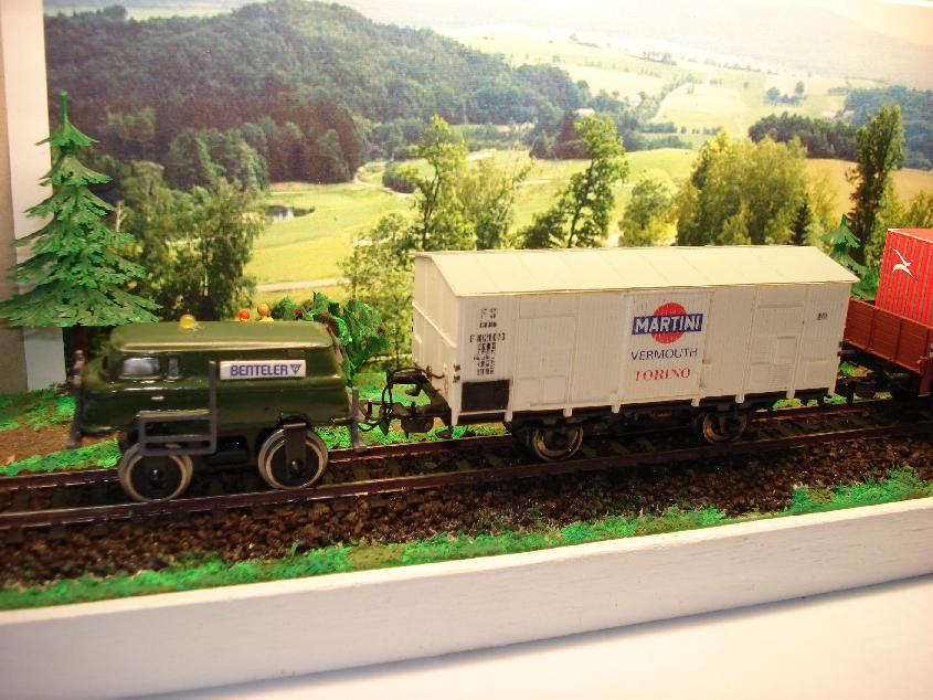 war. Da wurde rangiert, aber ohne Lok. Ein Unimog hatte zu seinen normalen Rädern auch noch abklappbare Schienenräder.