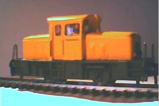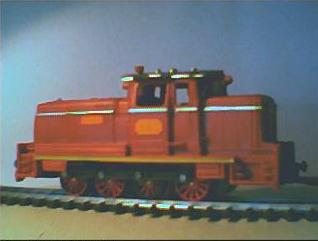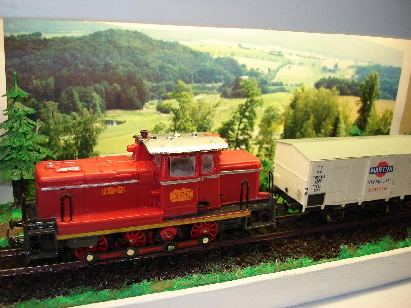In gleicher Weise entstand eine Diesellok. Die Lok wurde ebenfalls im An- und Verkauf erworben. Da sie nicht mehr fahren konnte, wurde es billig. Der Antrieb war unbrauchbar die Bemalung schlecht – also wurde wieder mit pmt umgebaut: