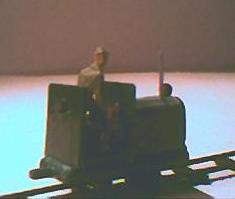 Ausgangspunkt für diese Überlegungen war ein Bausatz der Firma Auhagen, in dem unter anderen auch Loren und entsprechende Schienen vorhanden waren. Loren wurden von Menschen oder von kleinen Loks bewegt. Eine Lok gab es leider in diesem Bausatz nicht. So wurde denn aus Plastik-Restteilen eine Lorenlok, gedacht als Standmodell, gebaut. Das erste Bild vom Triebwagen zeigt die so entstandene Lok in der Vorderansicht, nachfolgend noch einige weitere Bilder: