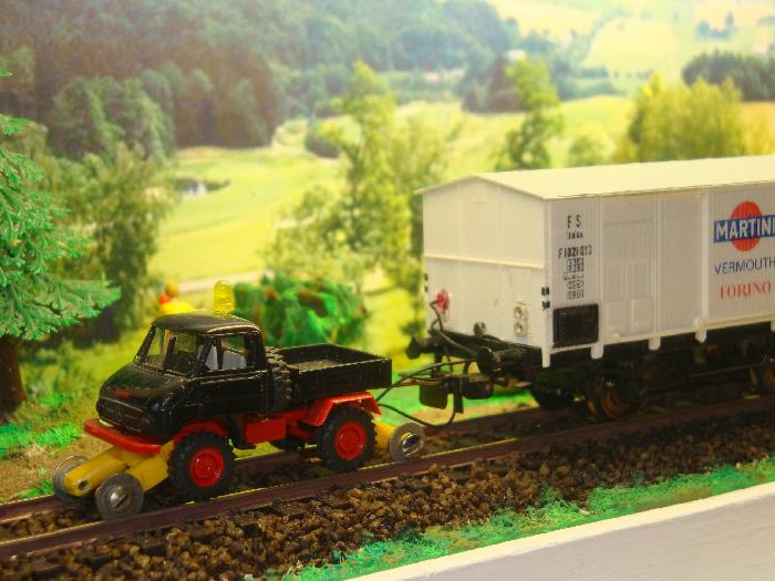 den Unimog und das mit einem kleinen Kasten vor dem Bauch - wie bei der Modelleisenbahn. Ich vermute, dass der Unimog